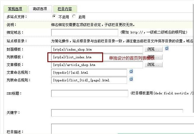 3、模板就直接用列表模板就可以了,如果你技术好的话,可以设计成自己想要的模板,比如矮油设计{iucms.com}瀑布流淘宝客模板首页采用的list_index.htm就是单独设计的,那么设置首页模板就可以设成这个,如下图