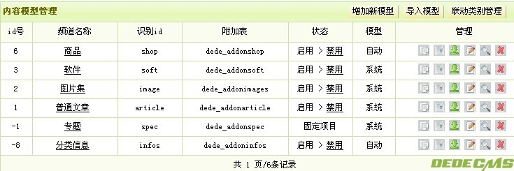 只是我有一个问题哦,这样新建起来的模型想删除的时候就删除不了,被列为系统模型,但这是手动建的呢?应该修改,在检测没有栏目使用的情况下可以删吧,不然我想可能会造成数据表的冗余。