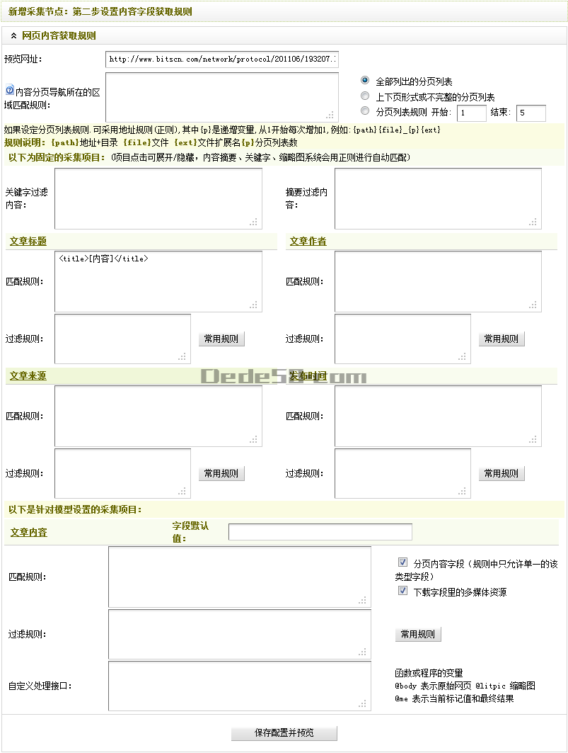 这个部分是编写采集规则的重点,也是难点。需要特别注意。