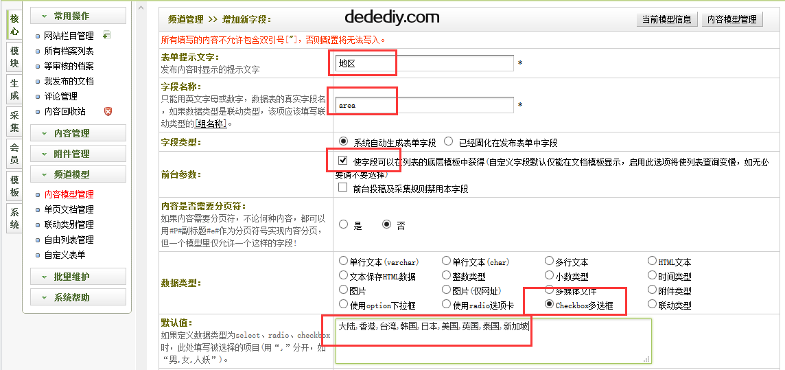 后台 - 核心 - 频道模型 - 内容模型管理