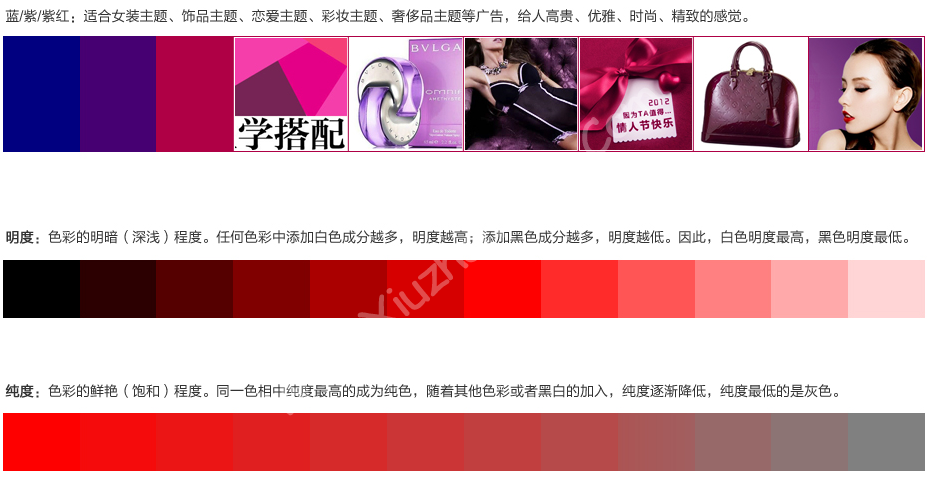 在色彩三要素中,色相对人类心里的影响最大,是人们首先识别到的元素。色相可以分为暖色系和冷色系。暖色系体现活泼、兴奋等动感的印象,冷色系体现稳重、安逸等静态的印象。紫色系和绿色系偏向于中间色,通常不能单独营造冷暖的印象,需要配套其他色彩营造画面。
